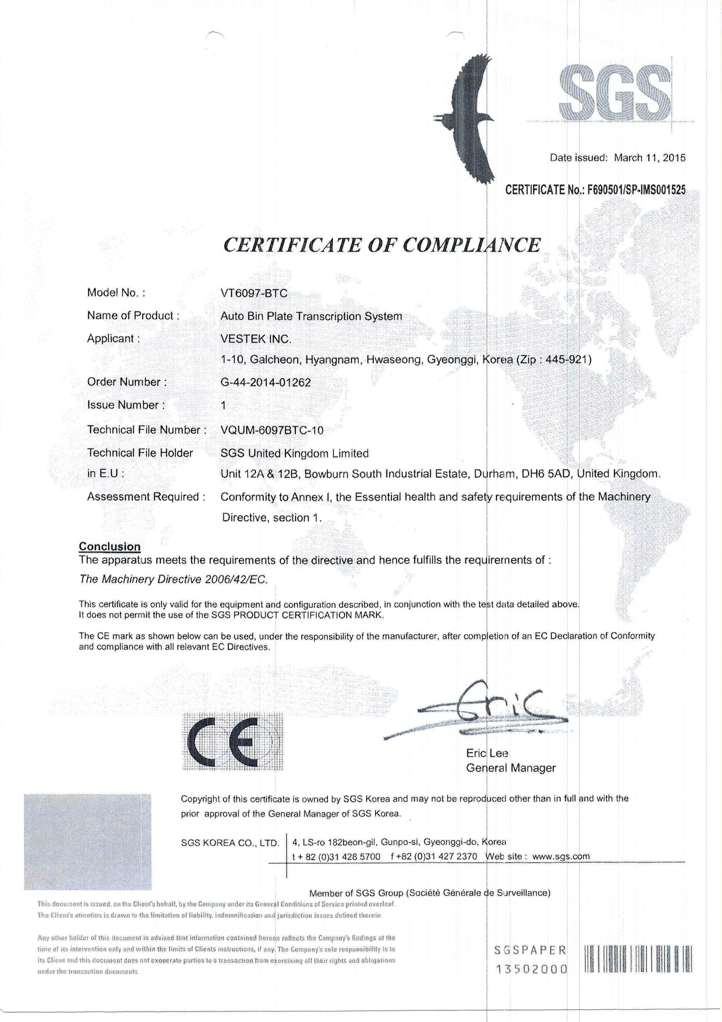 03Auto Bin Plate Transcription System VT-6097-BTC ¼³ºñÀÎÁõ