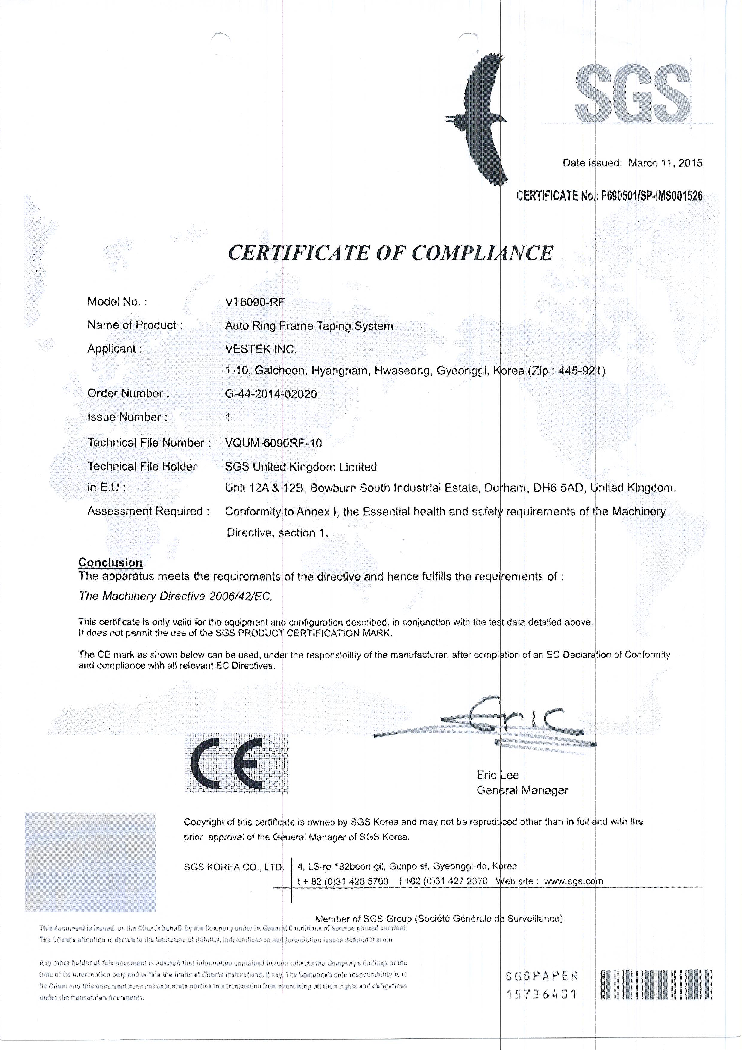 03Auto Ring Frame Taping System VT-6090-RF ¼³ºñÀÎÁõ