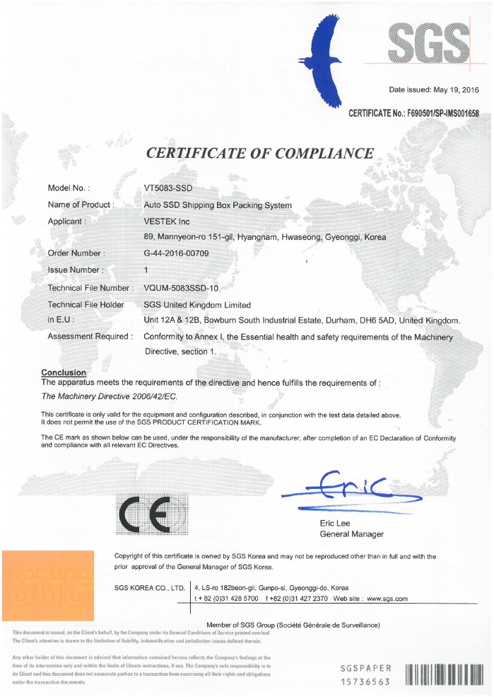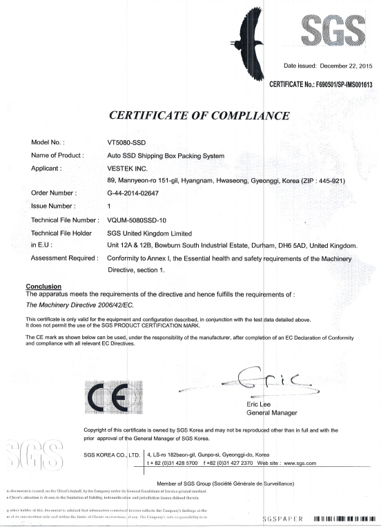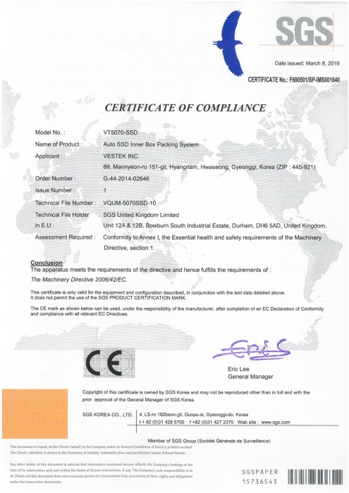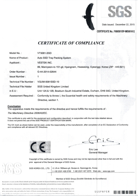 11Auto SSD Tray Packing System VT-5081-SSD ¼³ºñÀÎÁõ