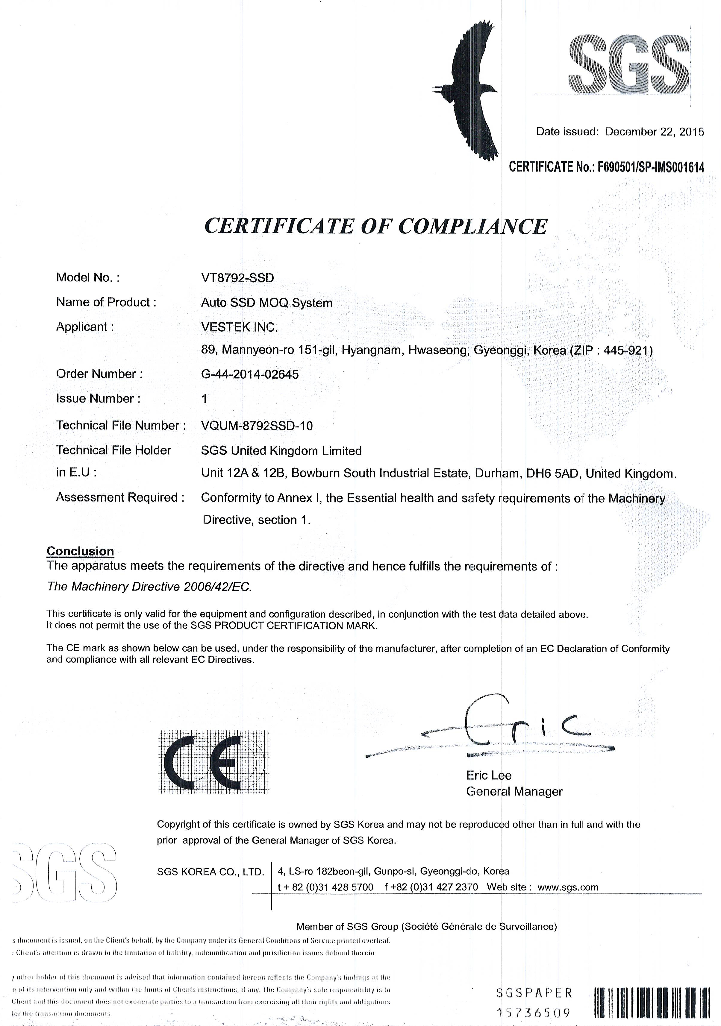 11Auto SSD MOQ System VT-8792-SSD ¼³ºñÀÎÁõ